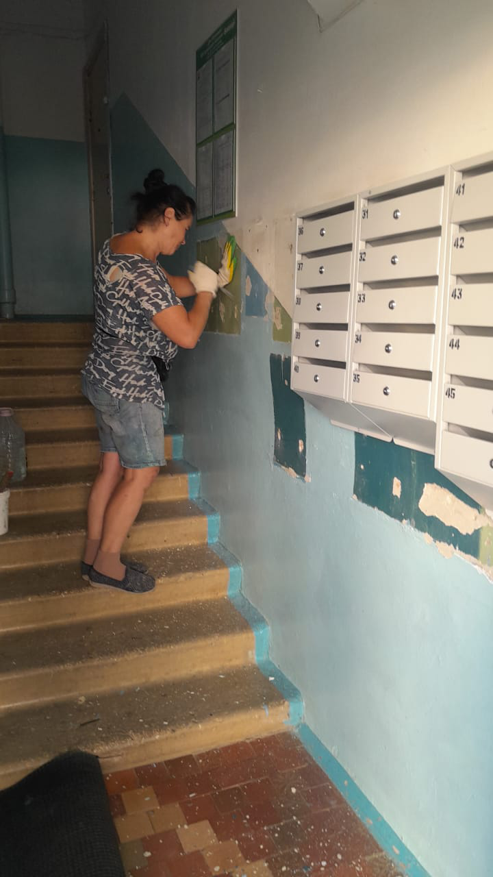Черноморская, 14 - частичный ремонт в подъезде при установки почтовых ящиков