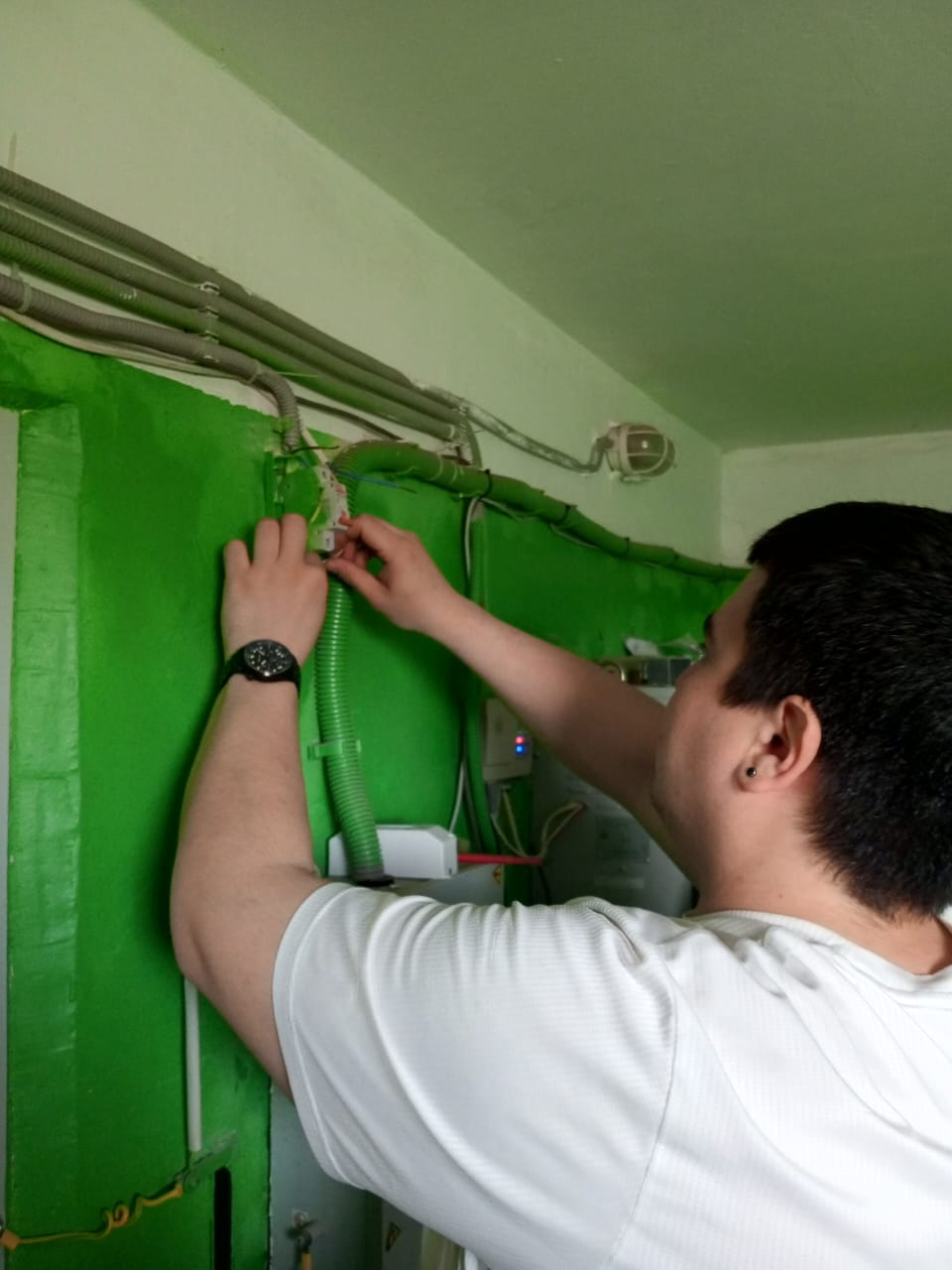 Кавказская, 21 подключение освещения в машинном отделении лифта и перед входом
