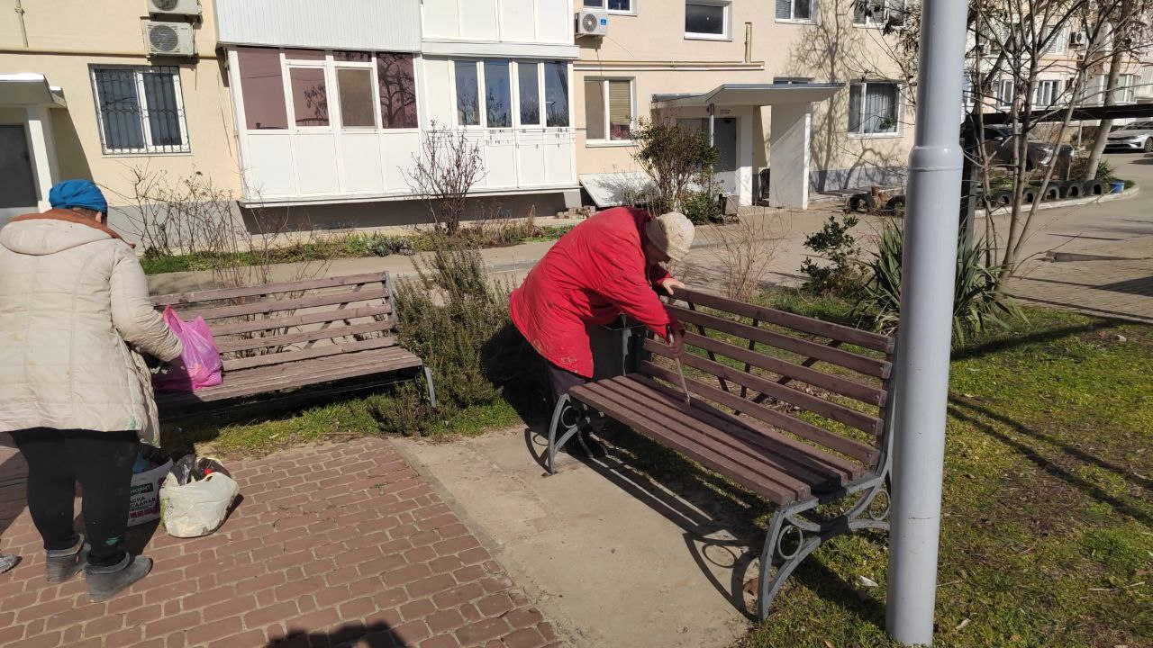 Кавказская, 17 покраска лавочек и урн
