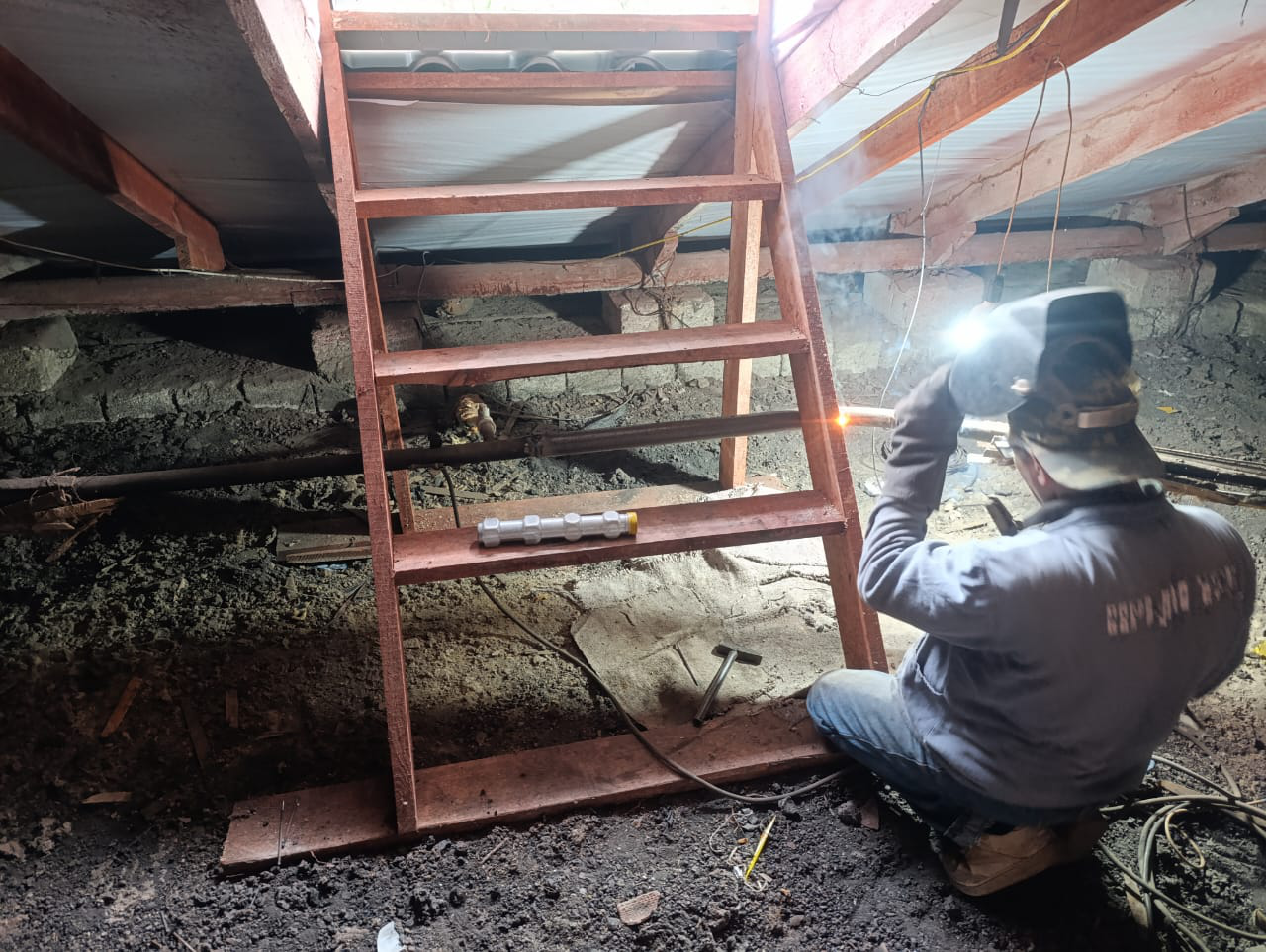 Орджоникидзе, 34 ремонт (сварка) аварийных участков труб ЦО на чердаке